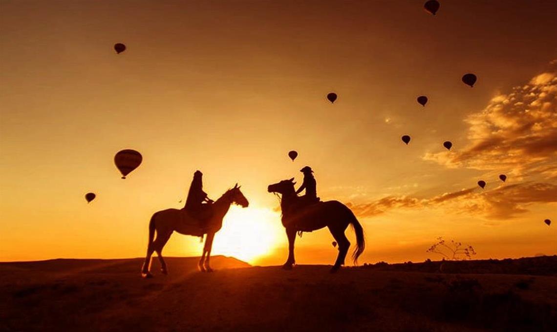 The name Cappadocia means “Land of beautiful horses”, so it’s only fitting to explore this spectacular landscape on a native Anatolian or Arabic horse – with a real Turkish Cowboy! We work with a professional ranch located in Göreme, where the horses are well cared-for, fully trained, and treated with respect. Our guides, the Turkish Cowboys, are local people who know the history and stories of the fascinating rock formations, local orchards, and the traditional vineyards that you will visit. Depending on the weather and your experience with Horseback riding, your adventure can be through the Rose/Red Valley, Sword Valley, Love Valley and the Honey/White Valley, as these are some of the most breathtaking trails to ride on. They also offer remotely hidden locations that rest far away from the traffic and the crowds. 2-hour rides can be arranged at anytime you prefer. However, we highly recommend you to ride either at sunrise or at sunset, as the view and colours of the sky are unparalleled to any other time of the day. *** Please Note: If you are interested in riding more or less than 2 hours, we can arrange a custom tour. Please e-mail us.